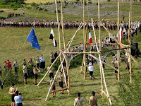 Pas mal du tout ! Les mâts (des scouts et des guides) étaient superbes et originaux. Pour voir la photo précédente en plus grand, on peut aller voir directement sur le blog de Zbigniew Minda. Par contre je ne maîtrise pas le polonais, moi non plus...     |
